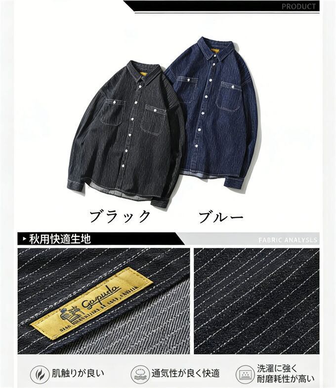 デニムシャツ メンズ 長袖シャツ ストライプ カジュアルシャツ トップス おしゃれ コーデ 着こなし メンズファッション シンプル ゆったり 大きいサイズ 通勤 ギフト 春 秋物 送料無料