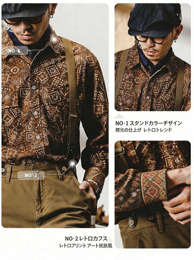 柄シャツ メンズ 長袖 花柄シャツ ワークシャツ プリント カジュアルシャツ 大きいサイズ ボタンシャツ キレイめ トップス メンズファッション お洒落 細身 レトロ 紳士 春 夏 秋 プレゼント 送料無料