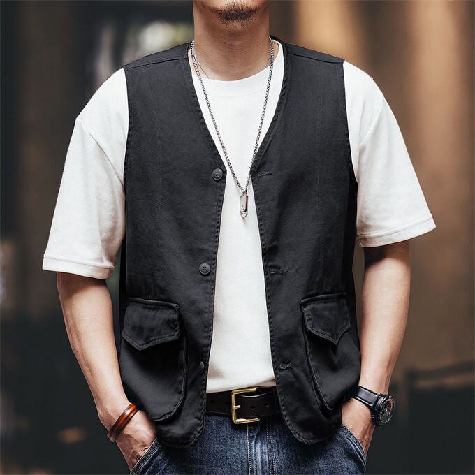 ベスト メンズ デニムベスト Vネック 重ね着 レイヤード 街着 おしゃれ ワークウェア 多機能ポケット アウター 春夏用 日常着 アウトドア メンズファッション オーバーサイズ レトロ 送料無料