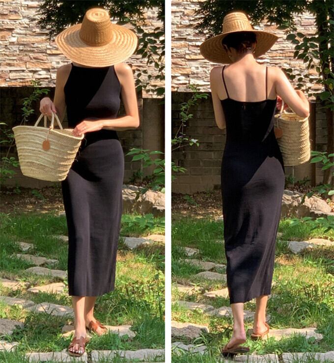 キャミワンピース レディース ロング丈 無地ワンピース エレガント 背中魅せ ワンピ スリム フィット シンプル きれいめ 韓国ファッション フェミニン オフィスカジュアル 通勤 20代 30代 40代 50代 夏 夏服 送料無料
