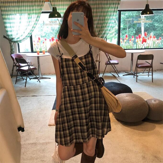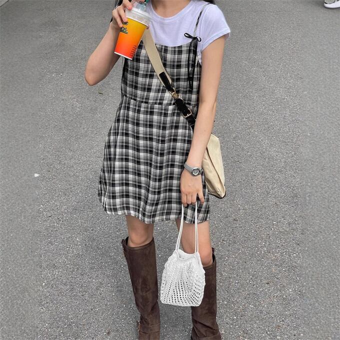チェックワンピース レディース キャミワンピース ミニ丈 ジャンパースカート Aライン ワンピ ショート丈 チェック柄 重ね着 レイヤード チュニック きれいめ オシャレ 学院風 森ガール 大人可愛い 韓国ファッション 通学 20代 30代 春 春服 夏 夏服 送料無料