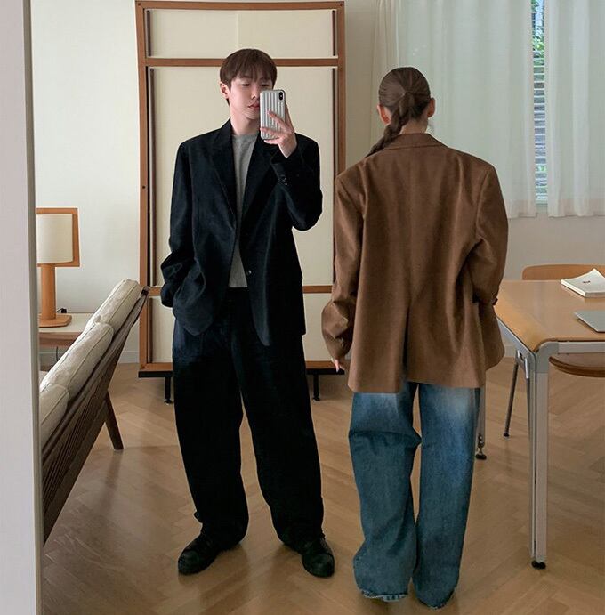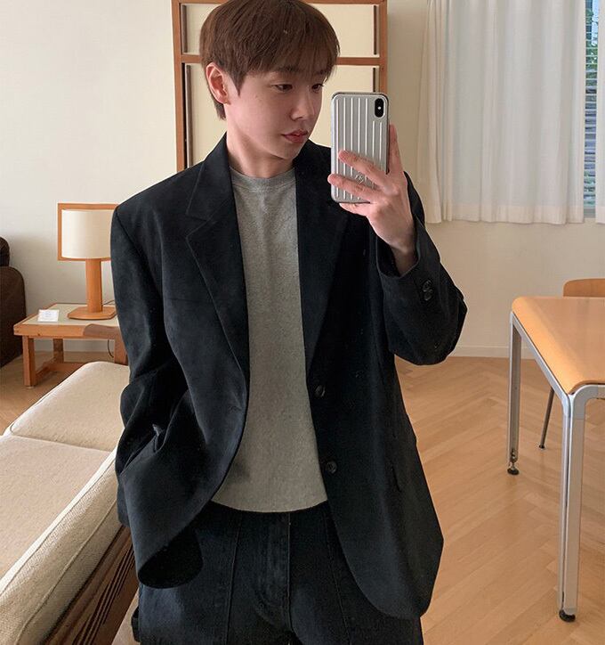 クラシックなノッチドラペルとルーズシルエットで、カジュアルからセミフォーマルまで幅広いシーンで活躍します。