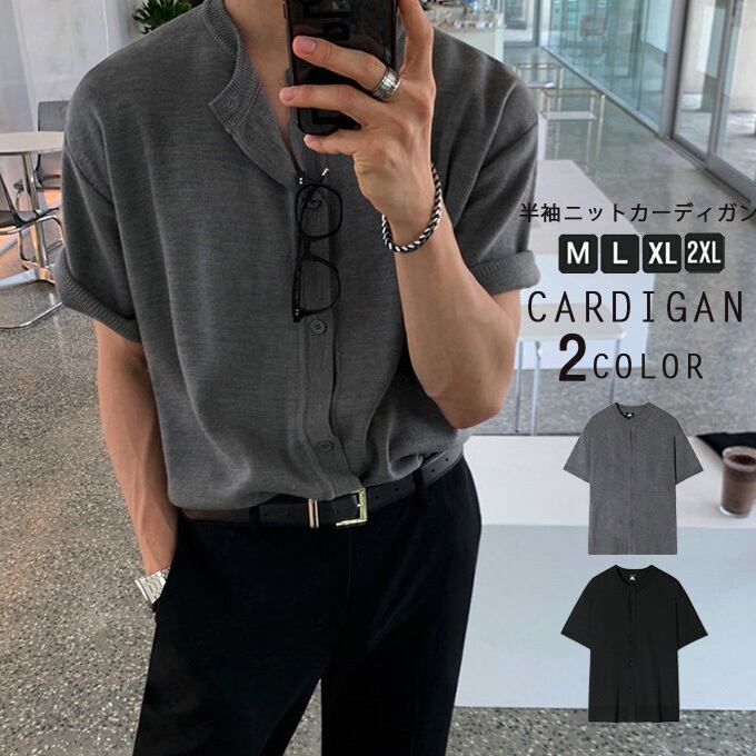 半袖ニットカーディガン メンズ 大きいサイズ カジュアル クルーネック ニットシャツ 春夏 無地 シンプル 韓国ファッション 薄手ニット 通気性 肌触り良い ゆったりカジュアル 夏服おしゃれ 送料無料