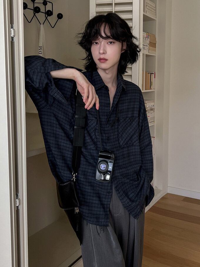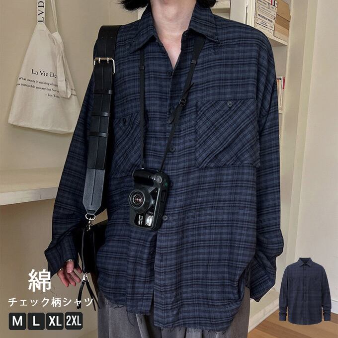 チェックシャツ メンズ 長袖シャツ 綿 コットン カジュアルシャツ ビッグシルエット 胸ポケット付き 無地 ゆったり 大きいサイズ シャツ 通勤 通学 レイヤードコーデ 春 春服 秋 秋服 男性 男 服 韓国ファッション 送料無料
