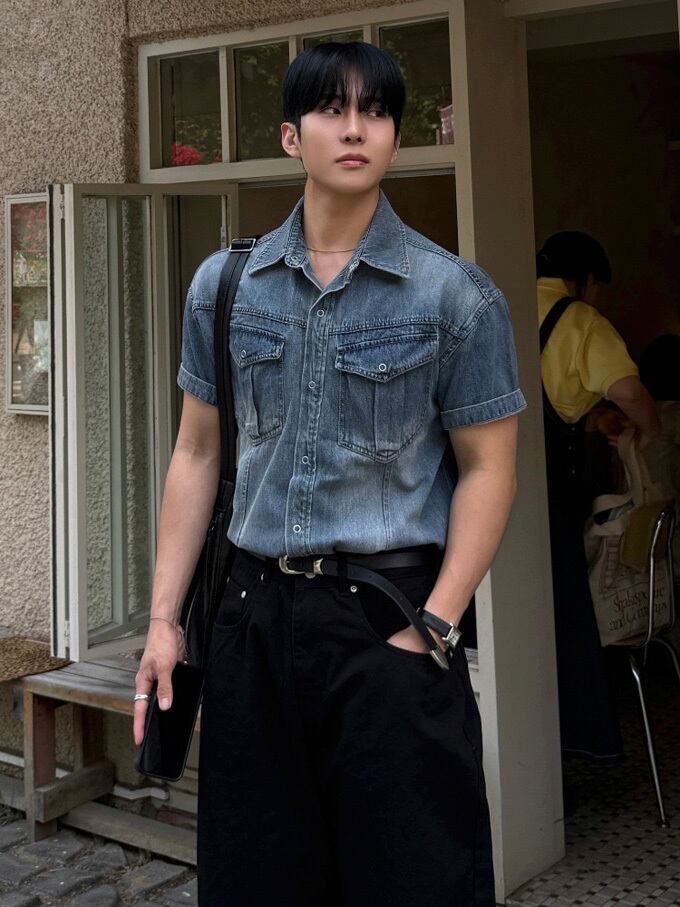 オーバーサイズのルーズシルエットとウエスタン風ダブルポケットが特徴的で、春夏のカジュアルコーデにぴったりな一着です。