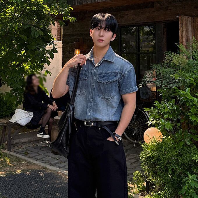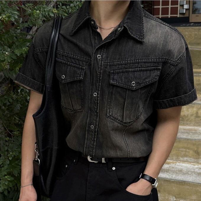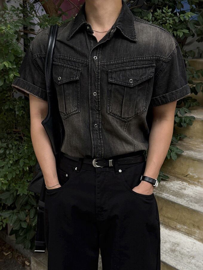 半袖デニムシャツ メンズ シャツ ヴィンテージ加工 半袖シャツ デニムシャツ 胸ポケット ジーンズシャツ カジュアルシャツ 薄手通学 通勤 20代 30代 40代 男 男性 夏 春 夏服 韓国ファッション 送料無料