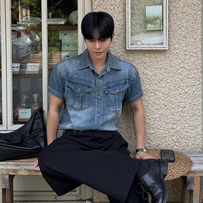ヴィンテージ感溢れるウォッシュドデニムを使用した半袖シャツ。