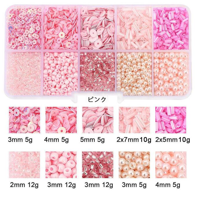 ビーズセット 手作りキット ビーズ刺繍 アクセサリー 材料セット スパンコール ミニビーズ チューブビーズ ラウンドビーズ 収納便利 多色 グラデーション 初心者 ハンドメイド DIY ネックレス ブレスレット イヤリング ピアス チャーム デコレーション ケース付き 大容量