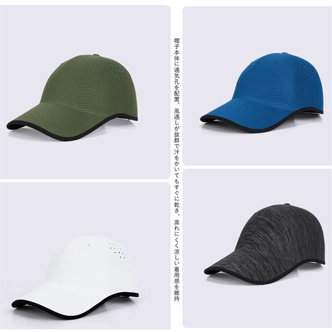 帽子本体に通気孔を配置、風通しが抜群で汗をかいてもすぐに乾き、蒸れにくく涼しい着用感を維持。<br>