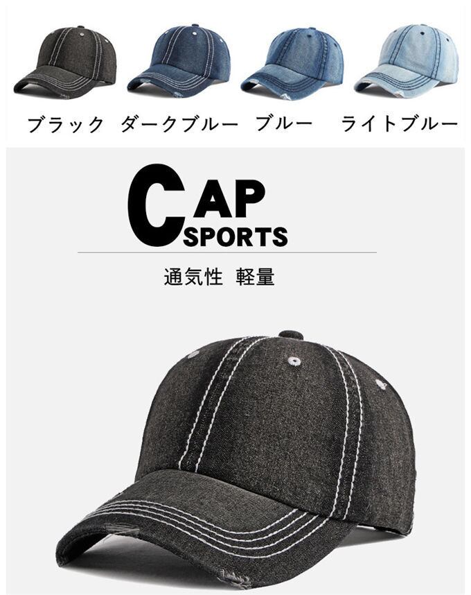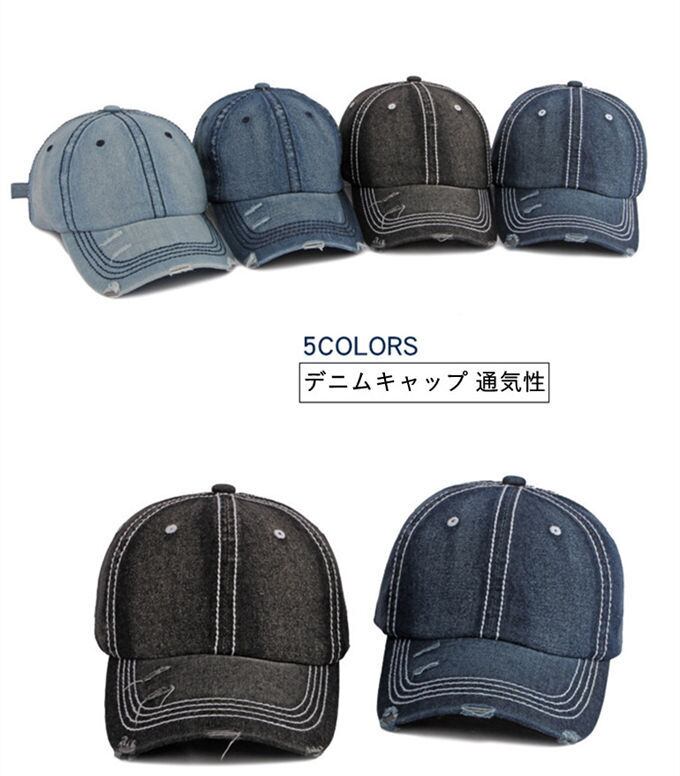 デニムキャップ ベースボールキャップ メンズ レディース ヴィンテージ ダメージ加工 UVカット 深め 日除け おしゃれ カジュアル アウトドア ゴルフ 釣り ランニング スポーツ 通勤通学 男女兼用 サイズ調節 春夏 送料無料