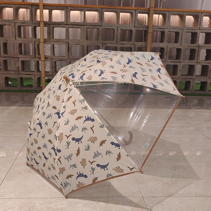 傘 子供用 長雨傘 撥水 安全傘 傘 軽量 手開き 撥水 透明窓付き おしゃれ キッズ ジュニア 子供用 女の子 男の子 恐竜柄 恐竜 かわいい かさ カサ 雨傘 ジュニア 入園入学 通学 幼児幼稚園 送料無料