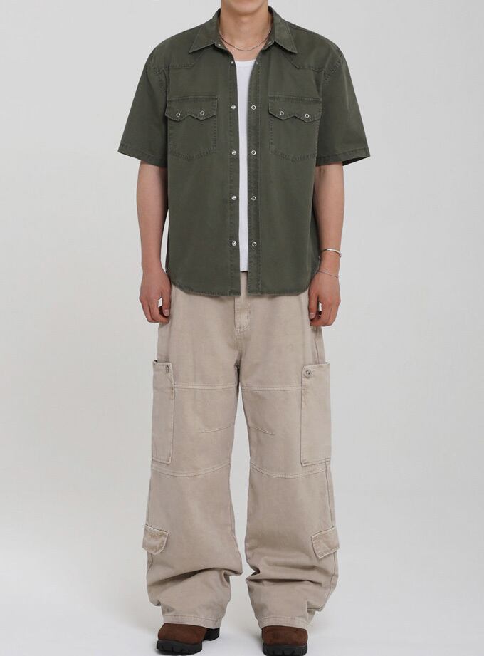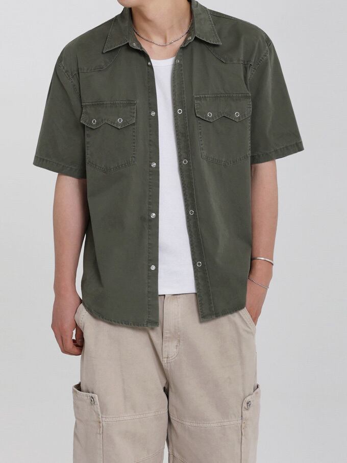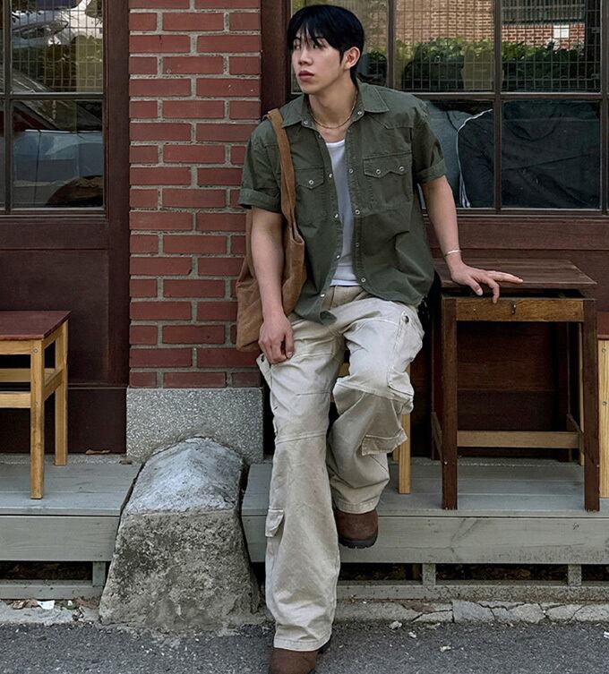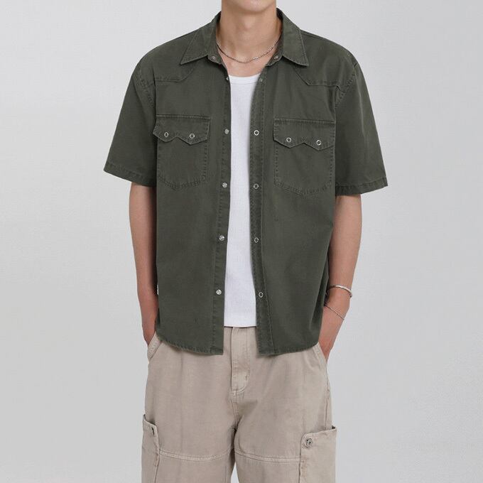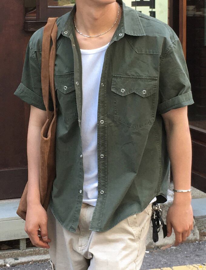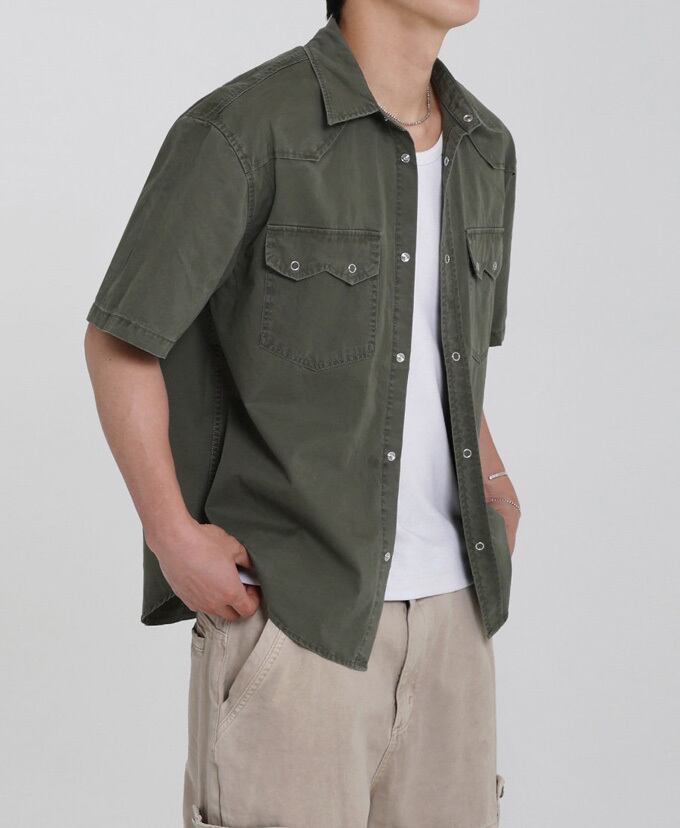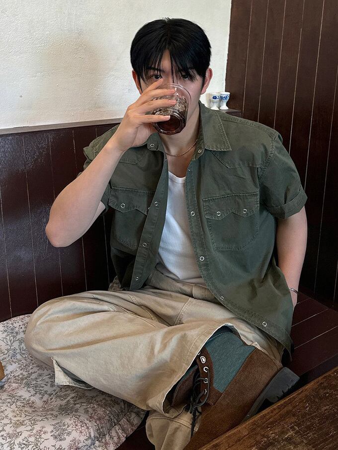 韓国メンズファッションの半袖ワークシャツです。