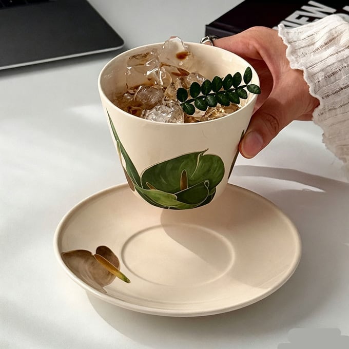 カップとソーサー両方に植物柄がデザインされ、統一感のあるおしゃれな食器です。