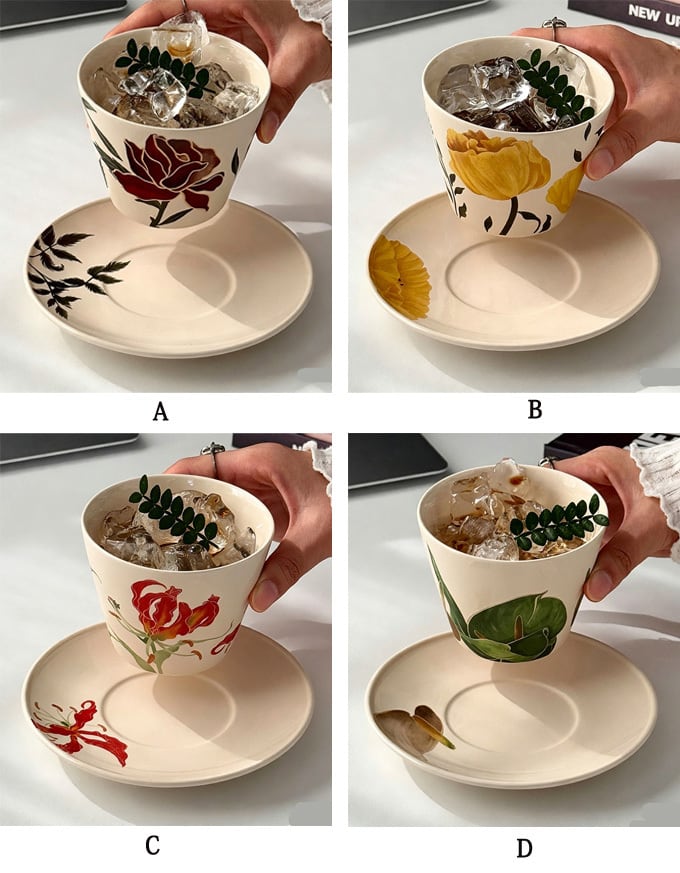 送料無料 カップ&ソーサー, コーヒーカップ, ティーカップ, マグカップ, ソーサー付きカップ 薔薇柄 陶器 レトロ コーヒーカップ おしゃれ 北欧風 電子レンジ可 食洗機対応 朝食 インテリア雑貨 誕生日 ギフト 母の日 プレゼント