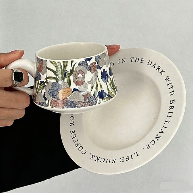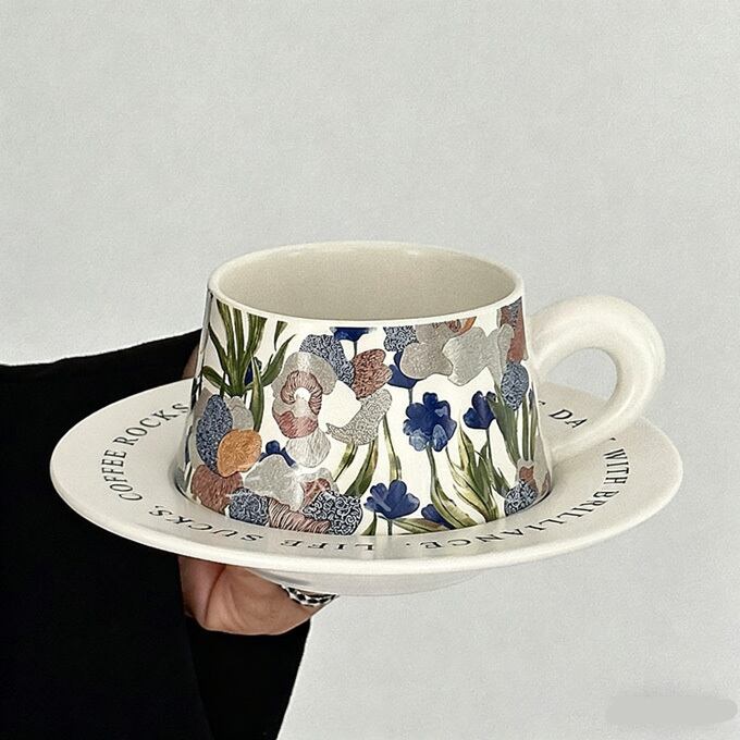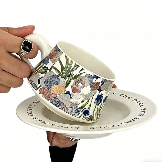 送料無料 カップ&ソーサー, コーヒーカップ, ティーカップ, マグカップ, ソーサー付きカップ アイリス花柄 陶器 レトロ コーヒーカップ おしゃれ 北欧風 電子レンジ可 食洗機対応 朝食 インテリア雑貨 誕生日 ギフト 母の日 プレゼント