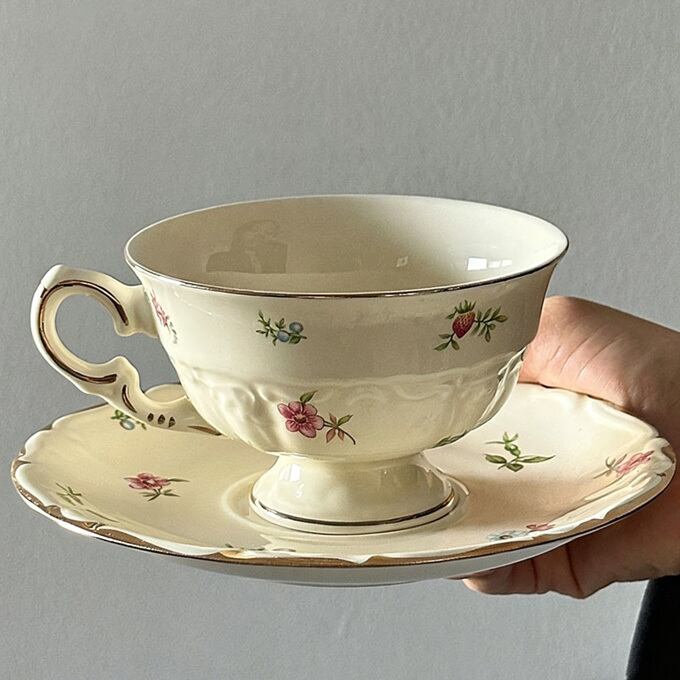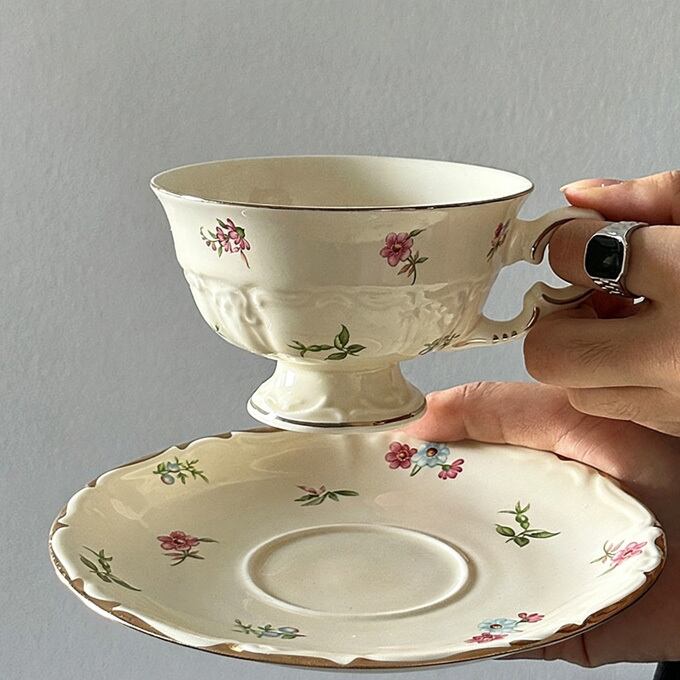 送料無料 カップ&ソーサー, コーヒーカップ, ティーカップ, マグカップ, ソーサー付きカップ 小花柄 陶器 レトロ コーヒーカップ おしゃれ 北欧風 朝食 インテリア雑貨 誕生日 ギフト 母の日 プレゼント