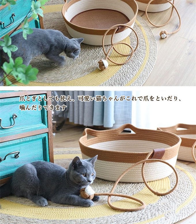 ペットベッド 猫 小型犬 ネコベッド 夏用 涼感 冷感 涼しい 通気性 蒲編み物 ペットマット 犬猫兼用寝床 小動物 藤編み 猫爪とぎ 可愛い シンプル インテリア 天然素材 送料無料