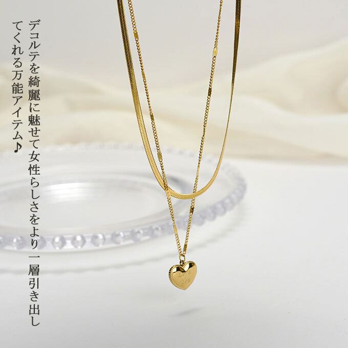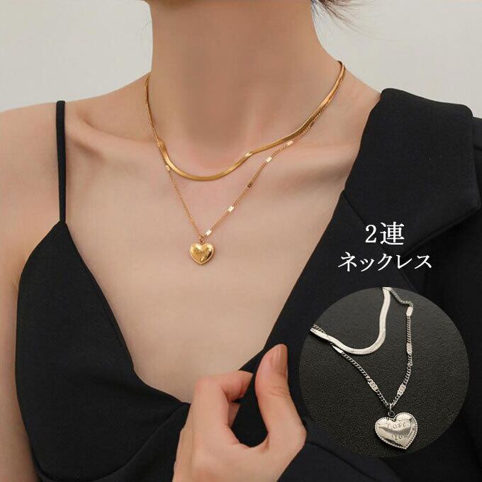 ネックレス レディース メタル 2連ネックレス ハート デコルテ シンプル 上品 大人 オフィス アクセサリー プレゼントギフト 贈り物 オシャレ 送料無料