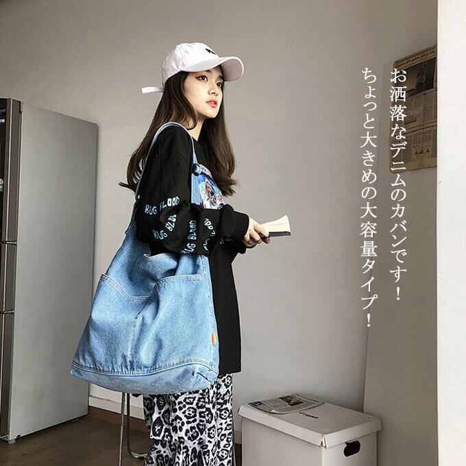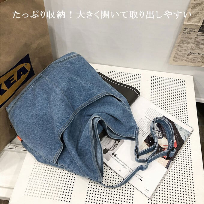 デニム ショルダーバッグ レディース 肩掛け 大きめ デニムバッグ大容量 デニムカバン 通勤バッグ 通学 大きい かばん お洒落 送料無料
