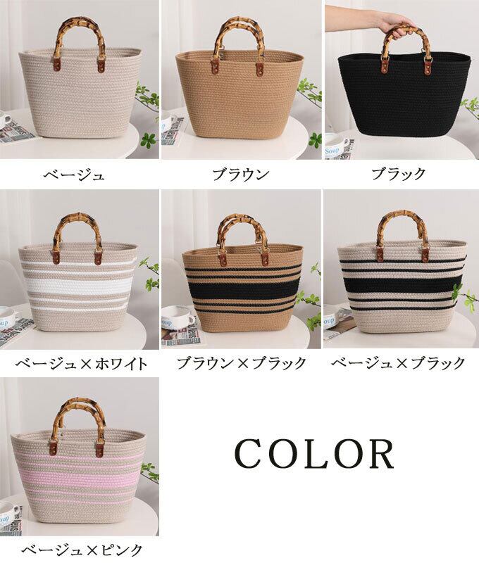トートバッグ かごバッグ 編みバッグ レディース 大きめバッグ ハンドバッグ 編み コットン ボーダー柄 可愛い 春 夏 手提げ プレゼント かばん 機能的 おしゃれ 送料無料