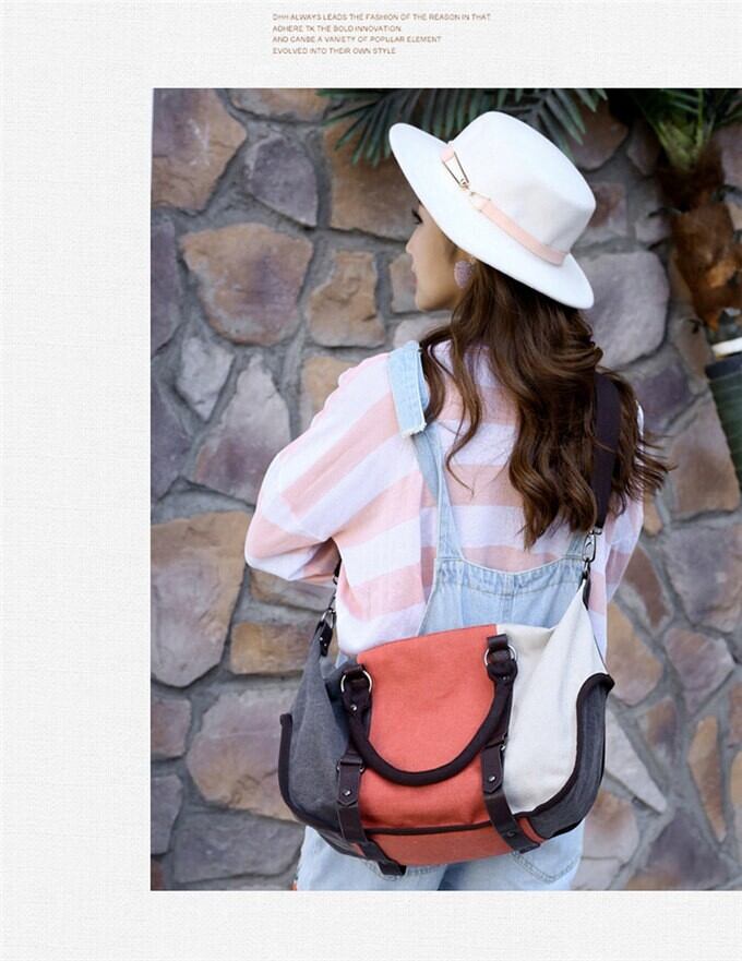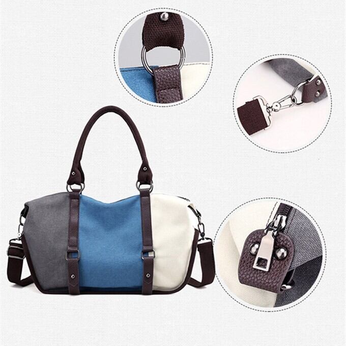 ショルダーバッグ ズックバッグ レディース ハンドバッグ 斜めがけバッグ カジュアル 旅行バッグ 大容量 レトロ 色切替 おしゃれ 3way 通勤 新作 送料無料
