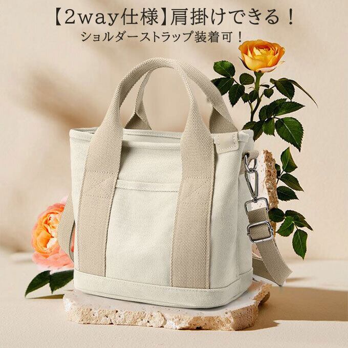 トートバッグ レディース 2way ショルダー バッグ 軽量 ファスナー付き 仕切り付き ミニトートバッグ マザーズバッグ ランチバッグ 帆布 大容量 送料無料