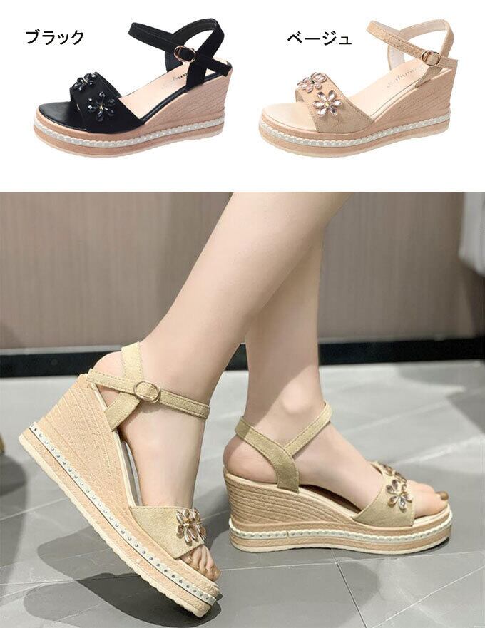 サンダル ストラップサンダル レディース ウェッジサンダル ウェッジソール かかと付き ハイヒール 8cmヒール 厚底 ジュートソール 歩きやすい 走れる カジュアル きれいめ おしゃれ