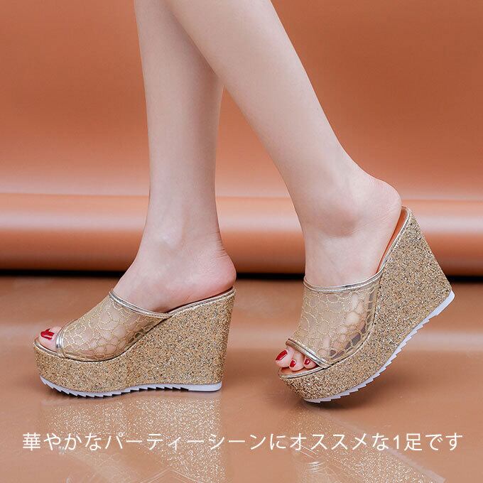 厚底 ウェッジヒール サンダル ミュール ハイヒール レディース 美脚 セクシーハイヒール 春夏 シア素材 透け感 脚長効果 クリアー 前厚トゥ クリアソール キラキラサンダル 送料無料
