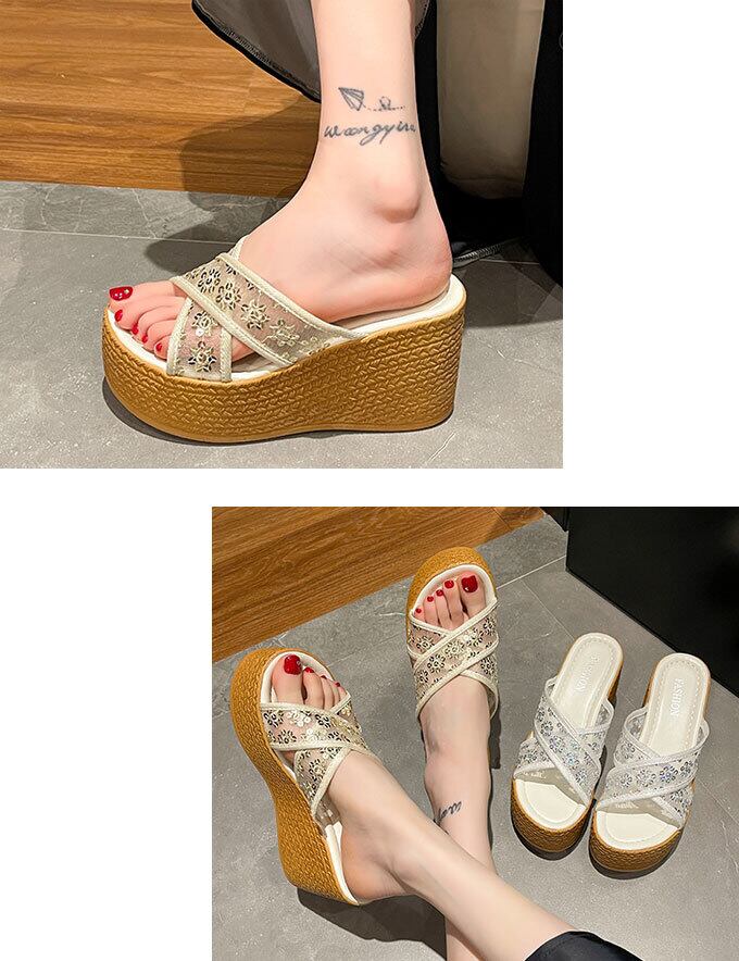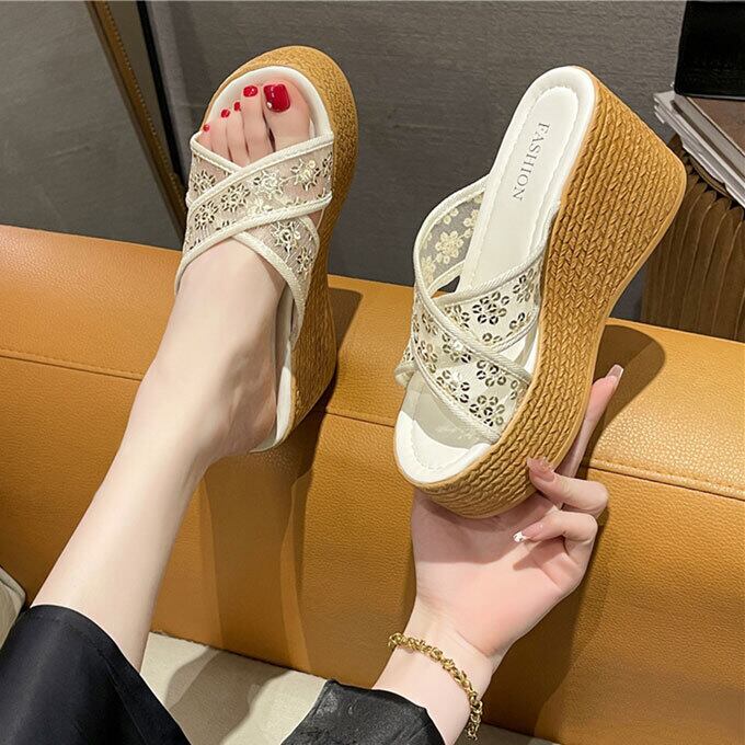 サンダル レディース ウェッジミュール キラキラ 厚底 厚底サンダル ウェッジ ミュール トレンド ジュートサンダル 8cm ヒール 美脚 疲れない 歩きやすい おしゃれ 可愛い 夏