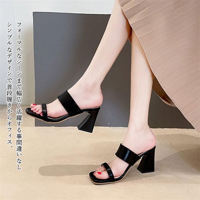 パンプス ミュールサンダル レディース ハイヒール チャンキーヒール 太ヒール 7cmヒール 厚底 疲れにくい 痛くない 歩きやすい 通気性 美脚 滑り止め 作 送料無料