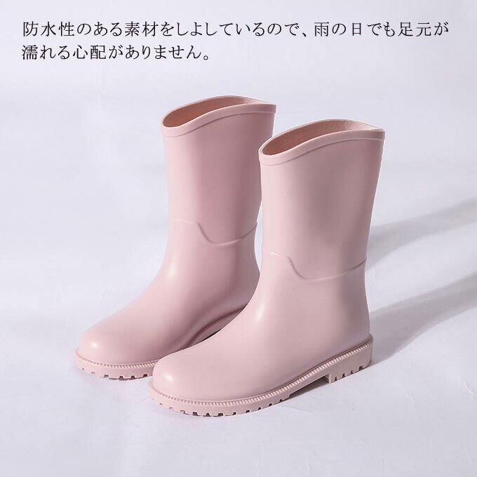 レインブーツ レディース おしゃれ ラバーブーツ ラバー 長靴 雨具 ミドル丈 柔らかい 可愛い 女性 婦人 大きいサイズ 雨 雪 梅雨 防水 靴 農作業