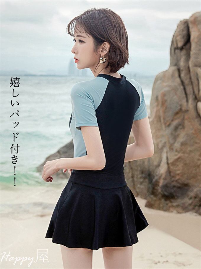 水着 レディース ワンピース 2点セット 長袖 半袖 オールインワン フィットネス 水陸両用 体型カバー 上下 お揃い ショートパンツ内蔵 フレアスカート 可愛い 競泳 綺麗 送料無料