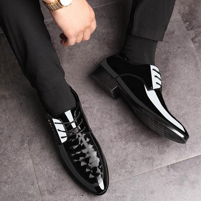 ビジネスシューズ メンズ エナメル 切替 スムースレザー 春 夏 秋 冬 合成皮革 革靴 レースアップ 紳士靴 軽量 フォーマル 大人 軽い 送料無料