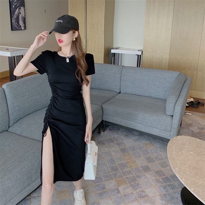 ロングワンピース レディース 半袖 スリット 大きいサイズ 着痩せ お洒落 細見え セクシー きれいめ フリル 大人 カジュアル フォーマル 韓国ファッション 夏新作 送料無料