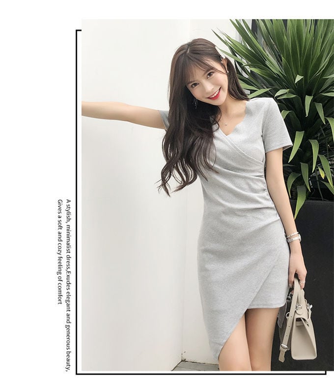 ワンピース レディース タイトワンピース ショート丈 ミニワンピ 半袖 Vネック リブ編み イレギュラー 無地 大きいサイズ 着痩せ お洒落 細見え 通勤 オフィス セクシー 韓国ファッション 夏新作 伸縮性はない!