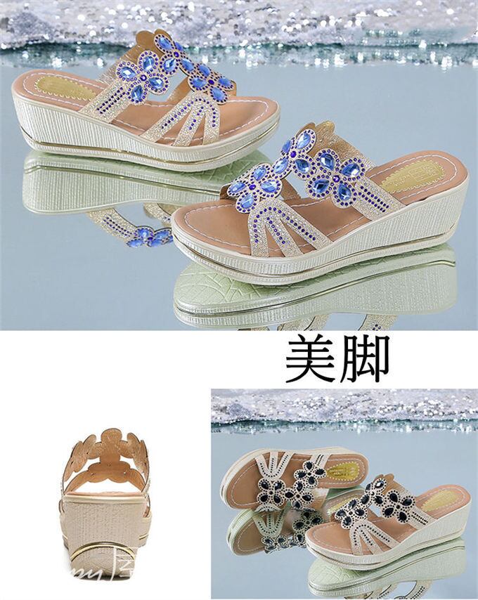 ミュール レディース サンダル ウェッジソール 厚底 サボサンダル 女性用 ビーズ飾り 結婚式 二次会 履きやすい 歩きやすい 美脚 仕事用 オフィス 通勤 ビーチサンダル 夏物 送料無料