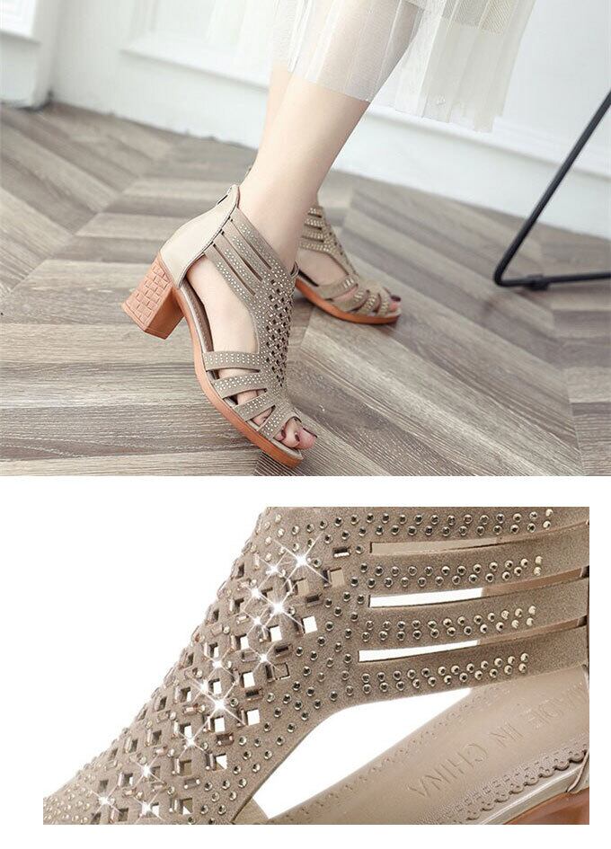サンダル レディース グラディエーターサンダル ハイヒール チャンキーヒール 夏サンダル 太ヒール ラインストーン飾り 疲れにくい 歩きやすい 通勤 美脚 夏物 新作 送料無料