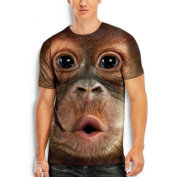 半袖Tシャツ アニマルプリント メンズ 3D 3d オリジナルtシャツ 夏 Tシャツ アニマル 動物 犬柄 オランウータン柄 カジュアル 夏新作 送料無料