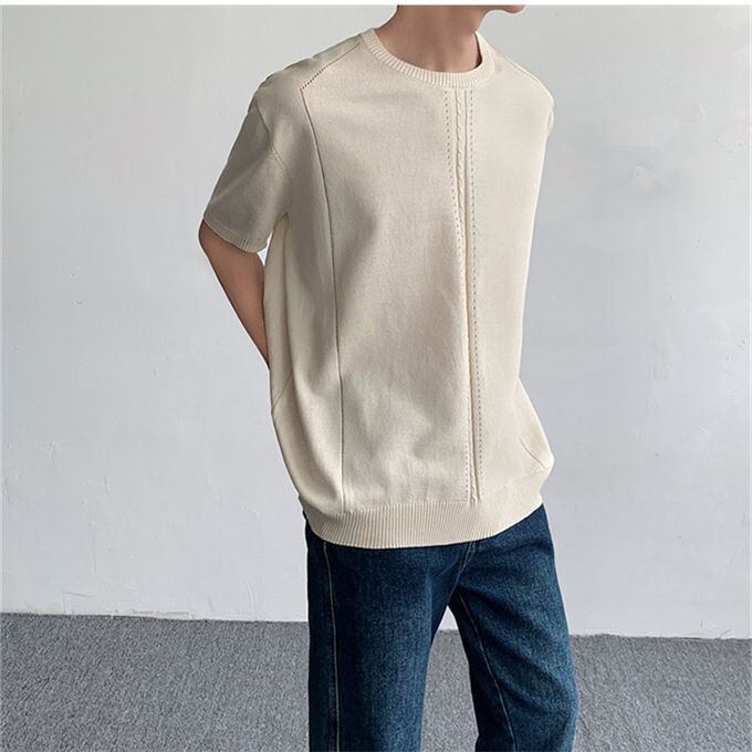 Tシャツ メンズ 半袖 ニットtシャツ トップス プルオーバー シンプル 無地 ゆったり 着痩せ カジュアル おしゃれ 通勤 通学 かっこいい 韓国ファッション 春夏 送料無料