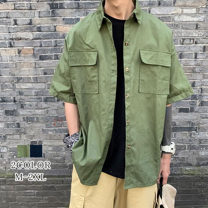 ワークシャツ メンズ 5分袖 トップス ポケット付き アウトドア おしゃれ ゆったり 着痩せ カジュアル かっこいい 通勤 通学 韓国ファッション レトロ 春夏 送料無料