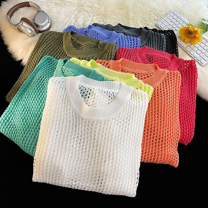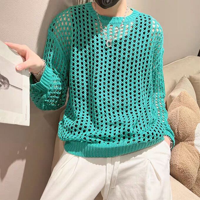 ニット サマーニット メンズ トップス 透かし彫り 透け感 プルオーバー 重ね着 ヒップホップ ゆったり 着痩せ カジュアル 通学 通勤 OL オフィス ビジネス 春 夏 秋 送料無料
