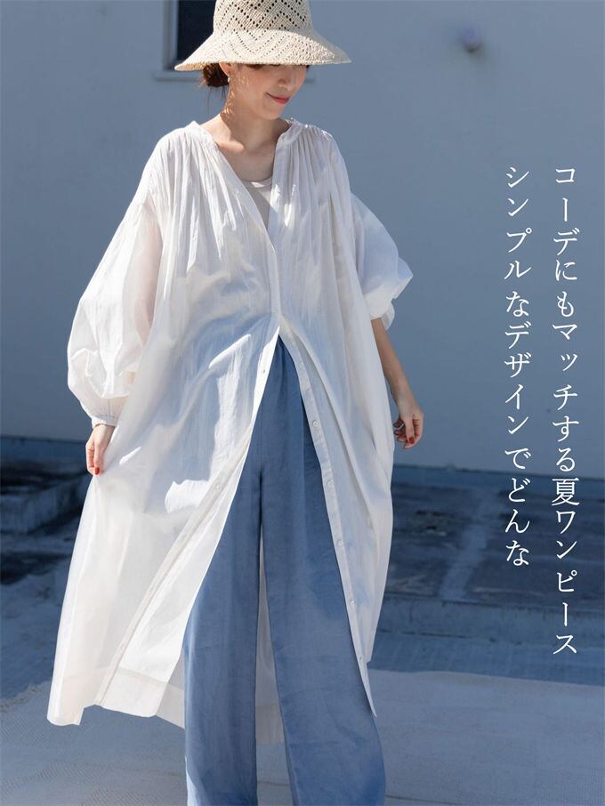 ロングワンピース レディース パフスリーブ ミモレ UV 紫外線対策 薄手 大人 可愛い 通勤 カジュアル トレンド 着痩せ おしゃれ 30代 20代 50代 40代 韓国ファッション 春 夏 秋 送料無料