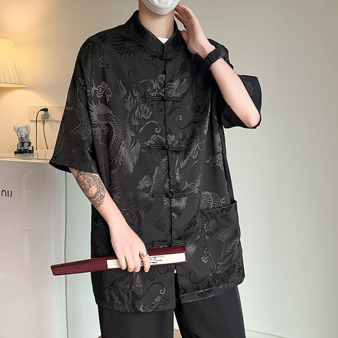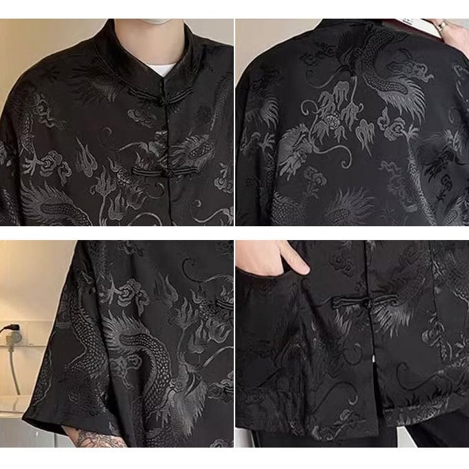 チャイナ服 ジャケット シャツ 五分袖 メンズ 男性用 中華風 衣装 トップス 立ち襟 唐装 体型カバー 着痩せ 通学 通勤 おしゃれ かっこいい ファッション 春 夏 送料無料