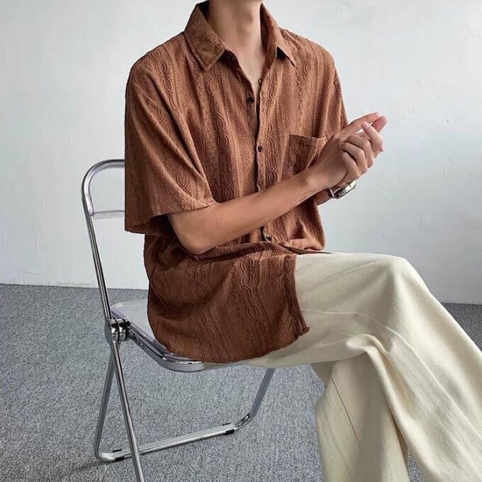 半袖シャツ メンズ カジュアルシャツ 透かし彫り ゆったり 体型カバー 着痩せ 無地 着回し 大人 薄手 通学 通勤 おしゃれ トップス 韓国ファッション 夏物 送料無料