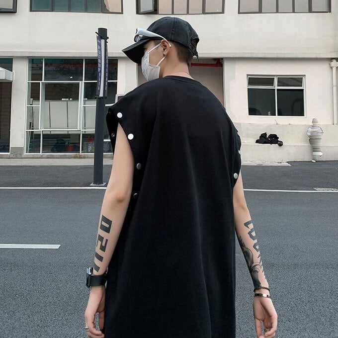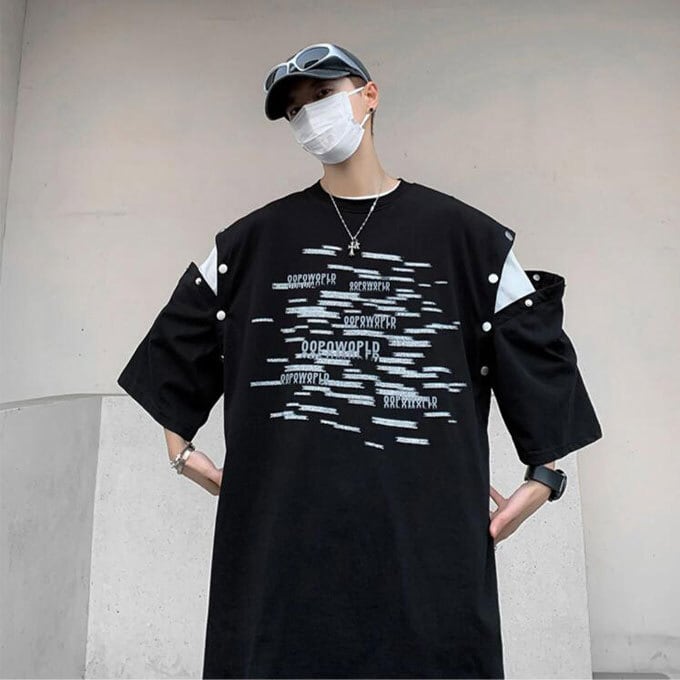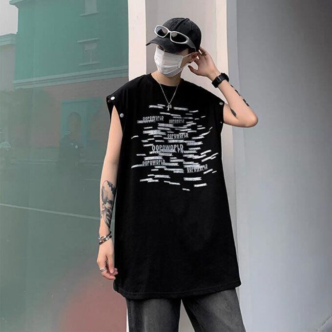 2WAY袖 ロングTシャツメンズ トップス 半袖tシャツ ノースリープ tシャツ ゆったり おしゃれ tシャツ プリント 肩スリット 肩あき ゆったり クルーネック 夏 カジュアル 送料無料