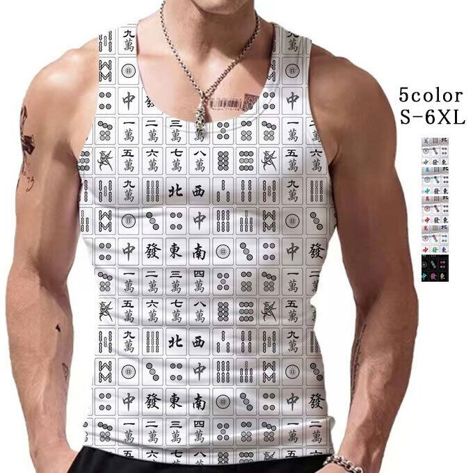 Tシャツ タンクトップ メンズ Tシャツ トランプ柄 麻雀柄 プリント ノースリープ トップス 袖なし tシャツ 大きいサイズ カジュアル 夏新作 送料無料