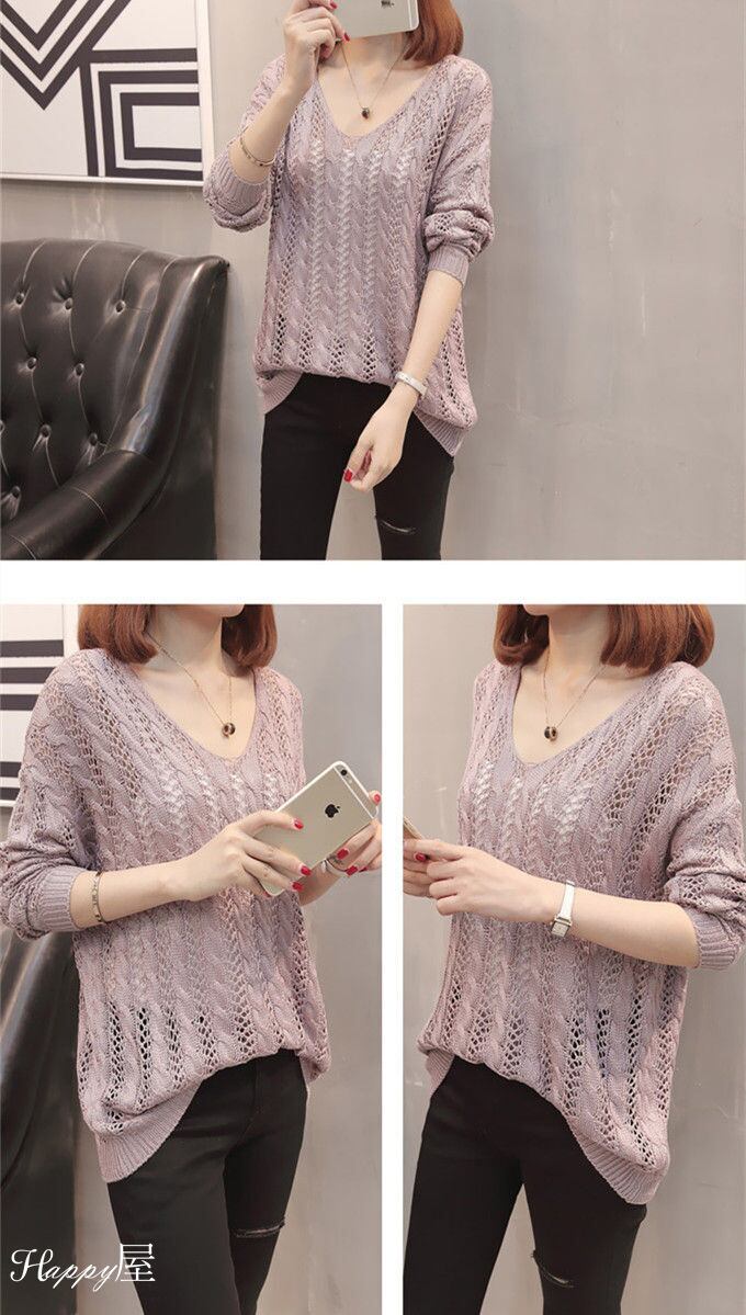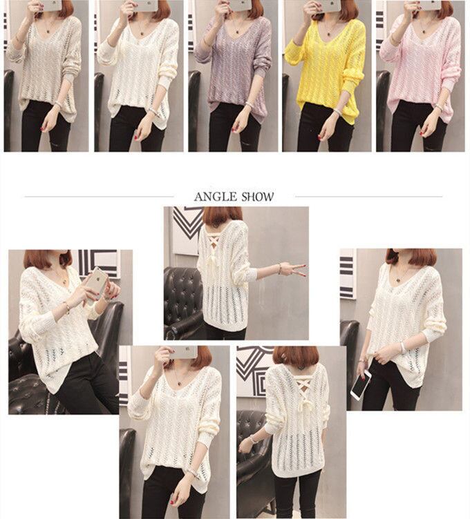 ざっくりニット セーター レディース 長袖 Vネック トップス ニットソー 薄手 プルオーバー 透かし編み ゆったり おしゃれ 夏 春物 新作 後ろリボン 送料無料