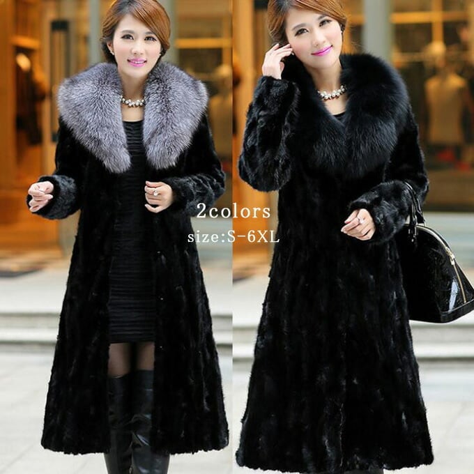 毛皮コート ファーコート レディース ロッグコート ミンク ボリュームフォクス襟 フェイクファー おしゃれ 上着 暖かい 秋冬 防寒 高級素材 レディースファッション