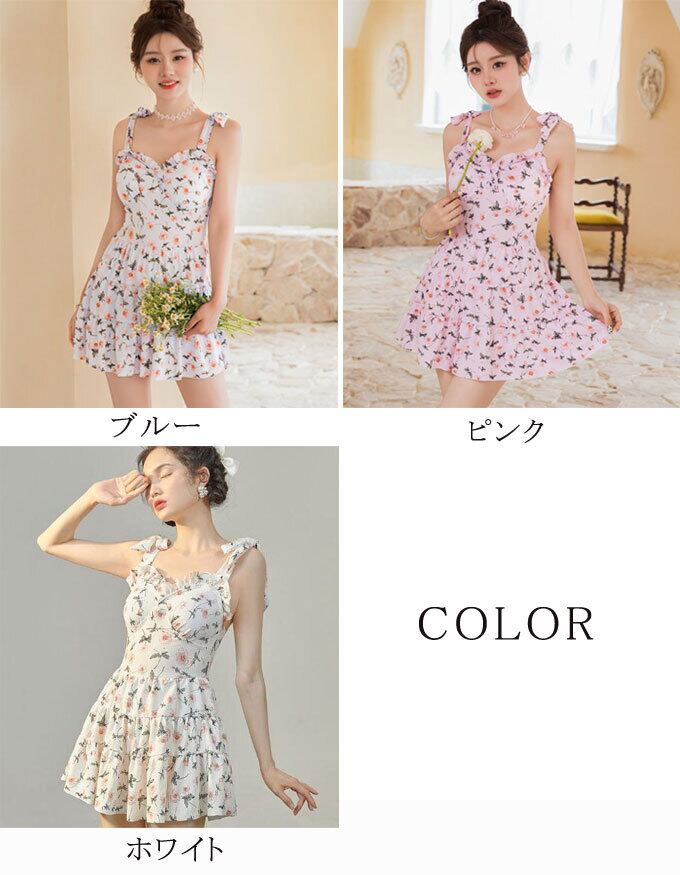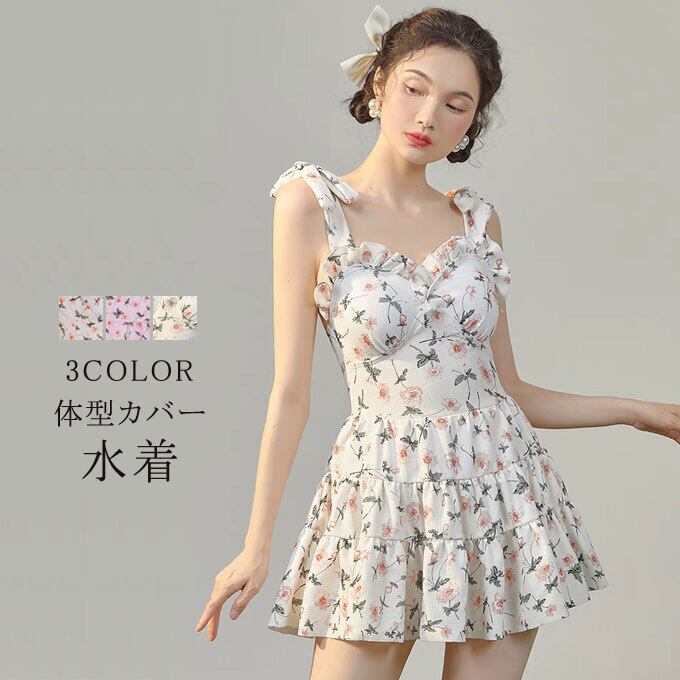 水着 ワンピース水着 パッド付き 体型カバー レディース 花柄 ミセス オトナ女子 セクシー バスト 盛れる ショートパンツ一体型 露出控えめ フリル オシャレ 夏新作 送料無料