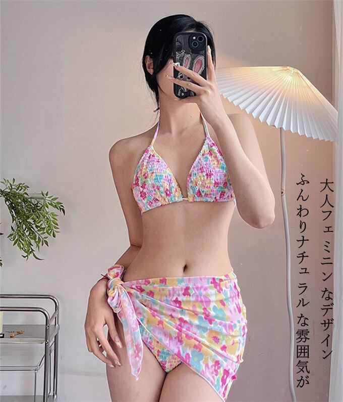 水着 レディース 体型カバー 3点セット 花柄 ビキニ ブラ+ショーツ オトナ女子 バスト 盛れる 女性用 20代 30代 40代 ママ水着 大人 可愛い セクシー 雰囲気 お洒落 送料無料